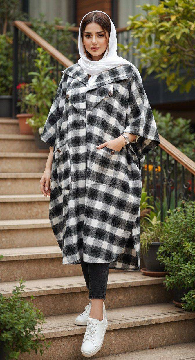 مانتو مازراتی بلند یقه انگلیسی آستین پاکتی