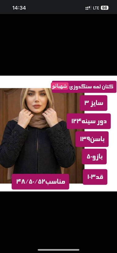 ارائهشده در سه سایز(۳۸تا۵۲)