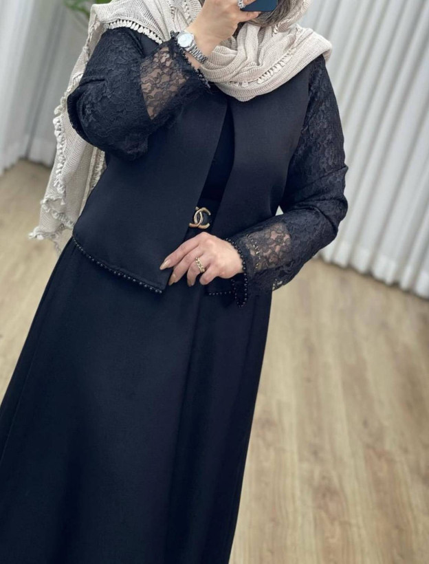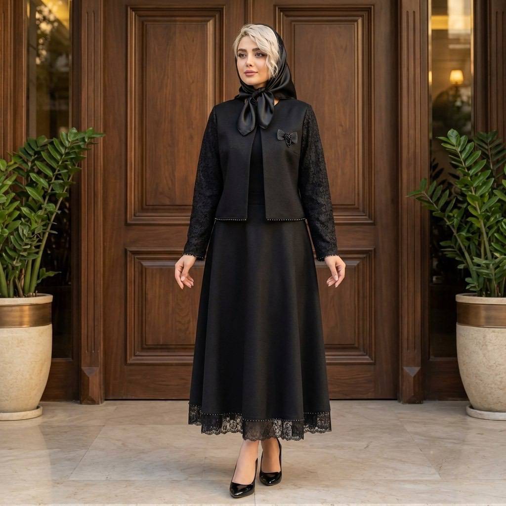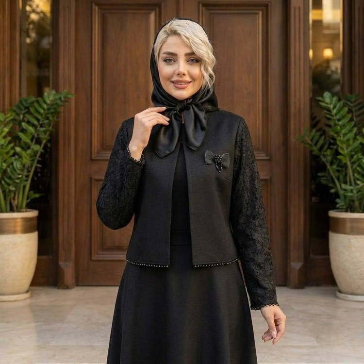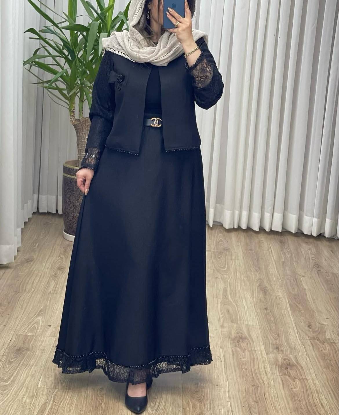 💫کت و دامن دانتل با مرواریددوزی ظریف