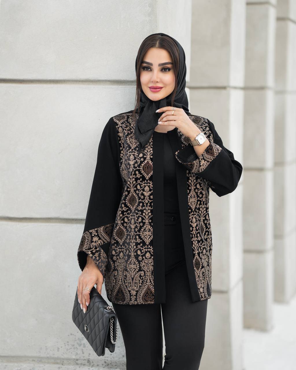 جنس: کرپ مروی جت اندونزی به همراه مخمل سوزن دوزی
