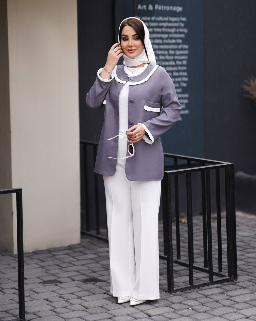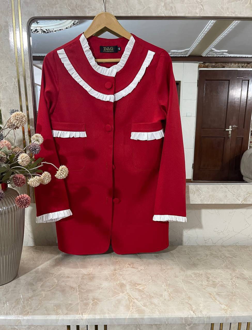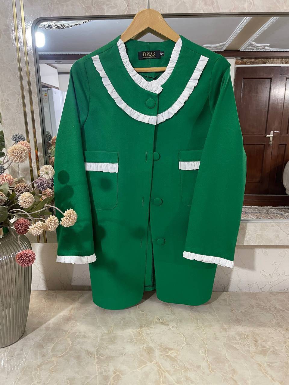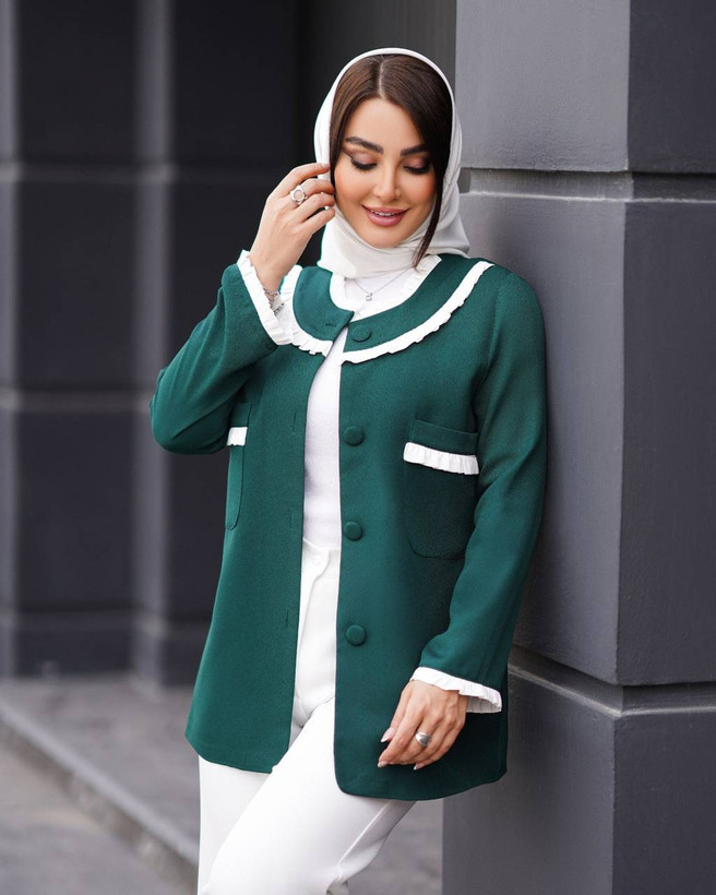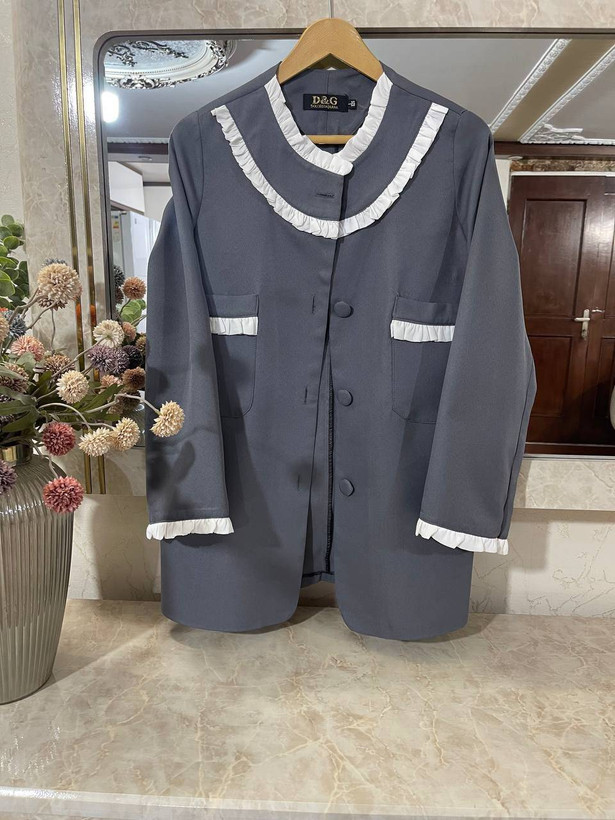 جلوی کت با دکمه بسته میشود.
