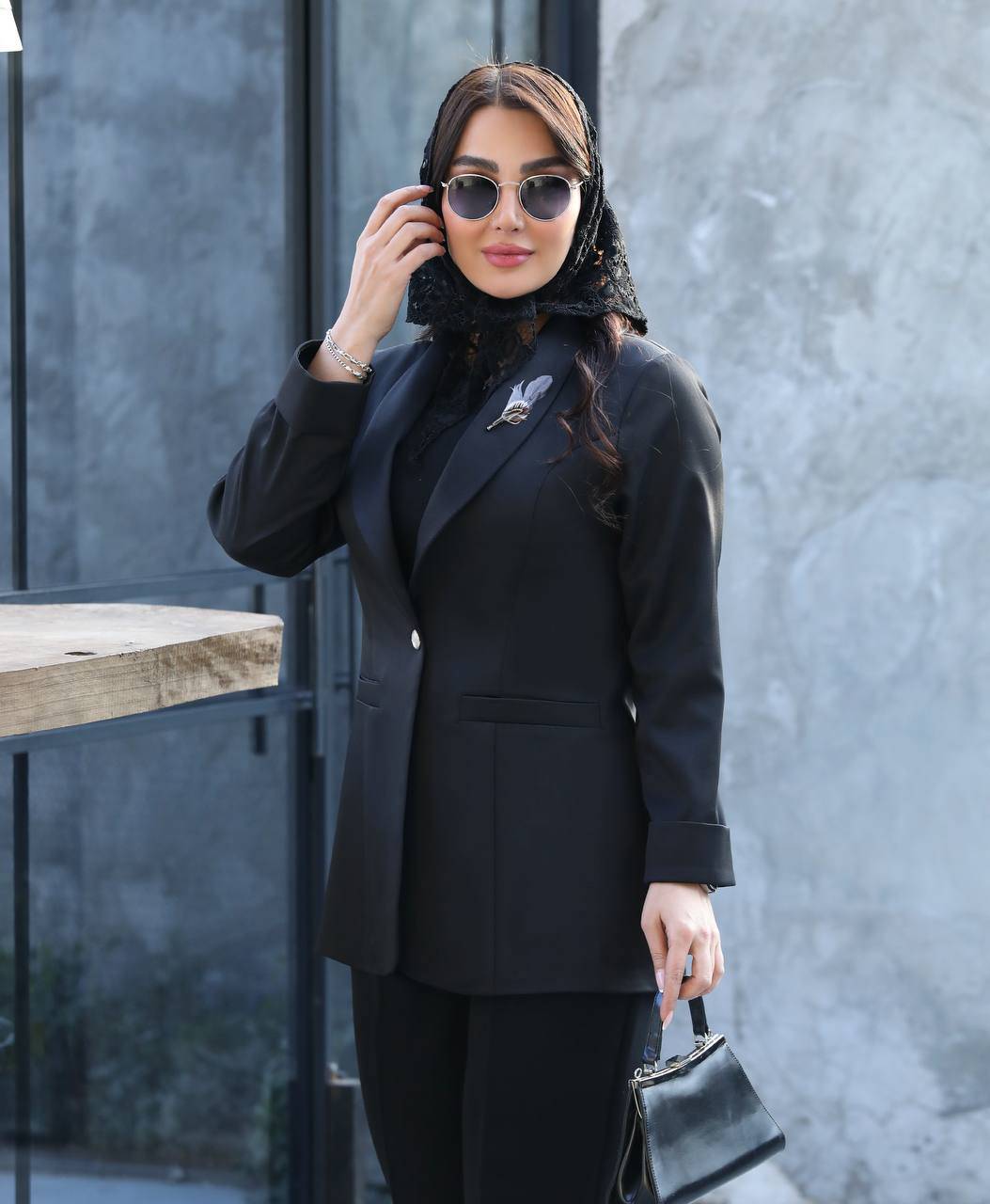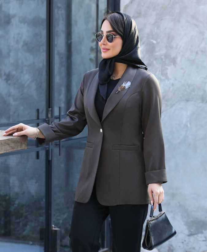 🧥مدل: کت تک یقه آرشال با گل سینه ی پر