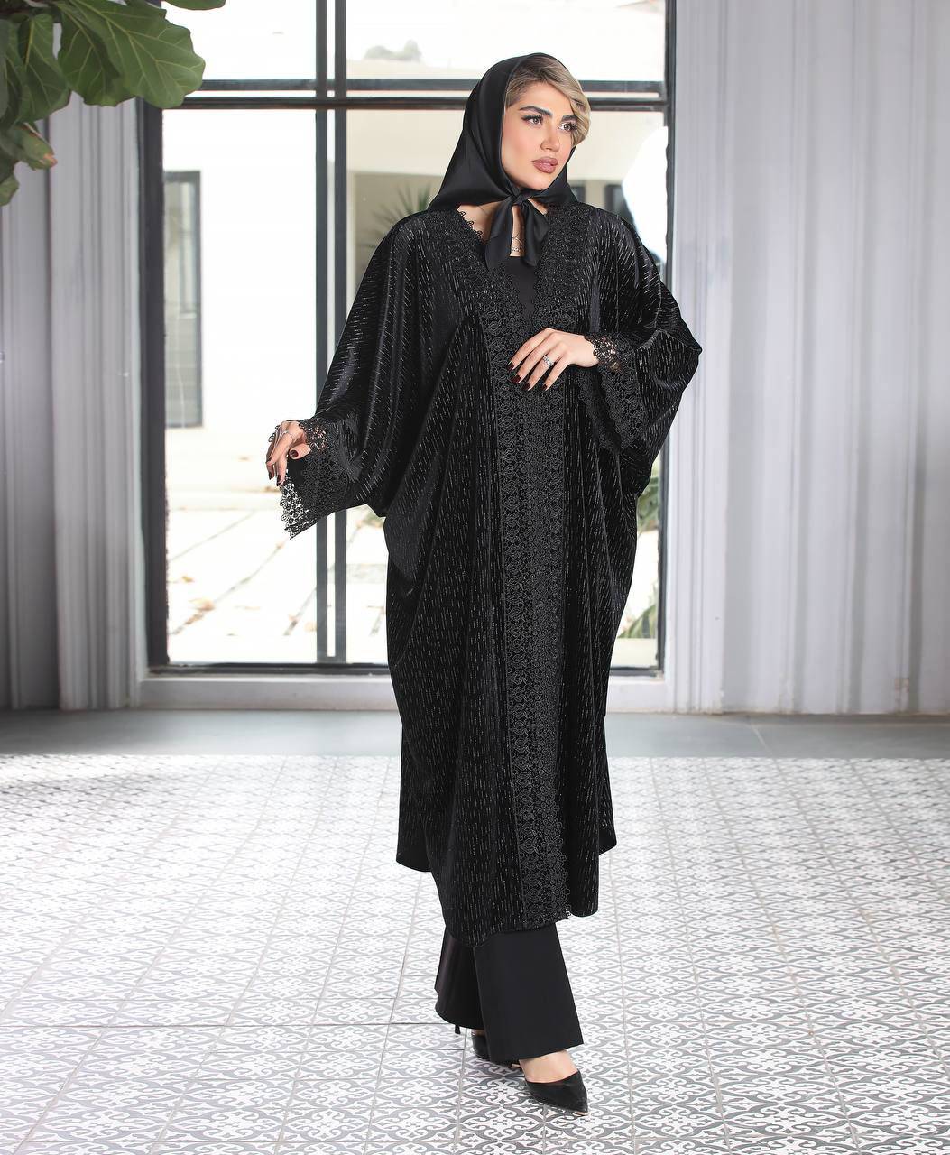 🧵جنس پارچه: مخمل راه راه لمه دار / با نوار گیپور نگیندار