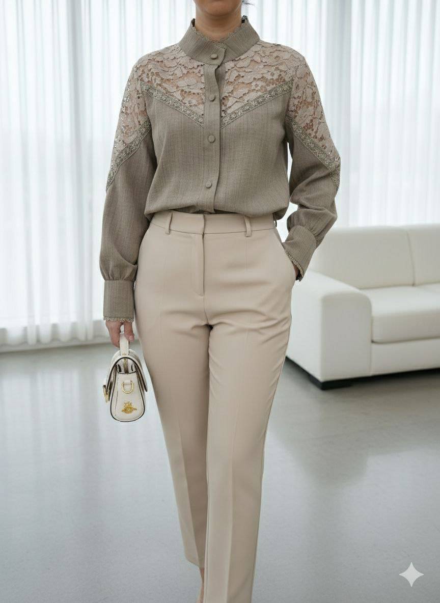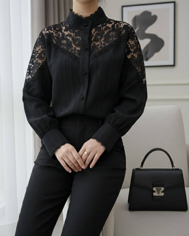 شومیز سرشانه گیپور