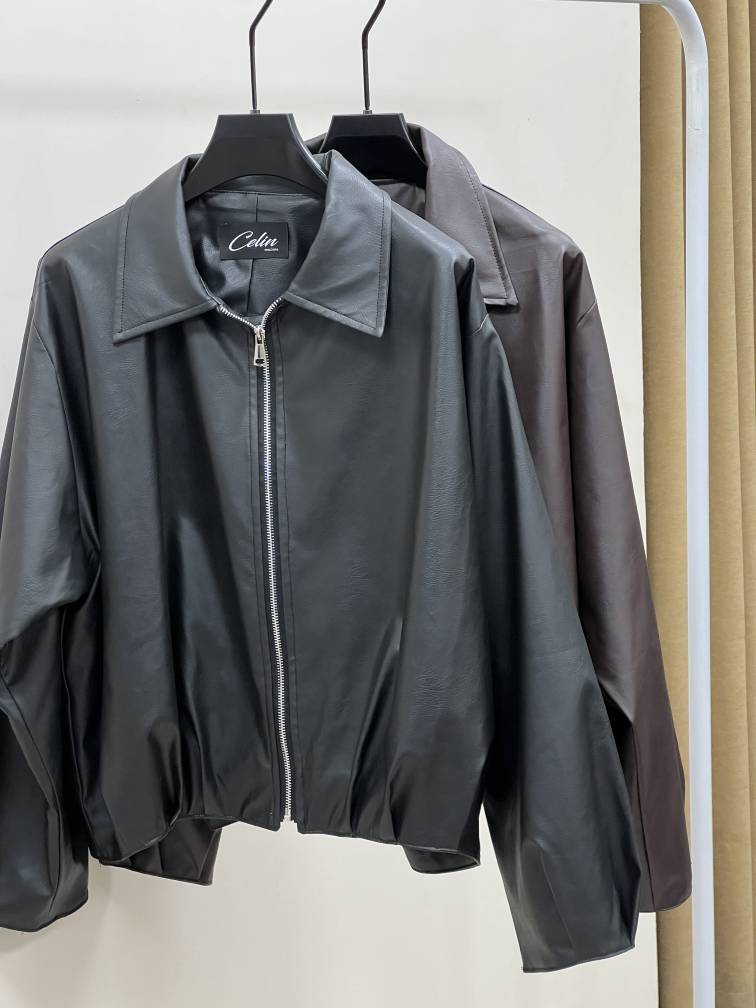 👗بامبر چرم آستین پف 👗