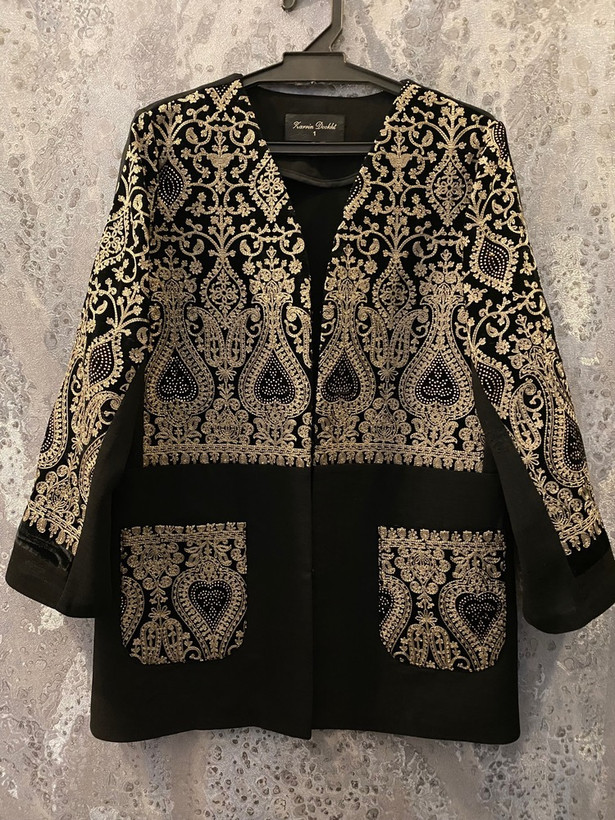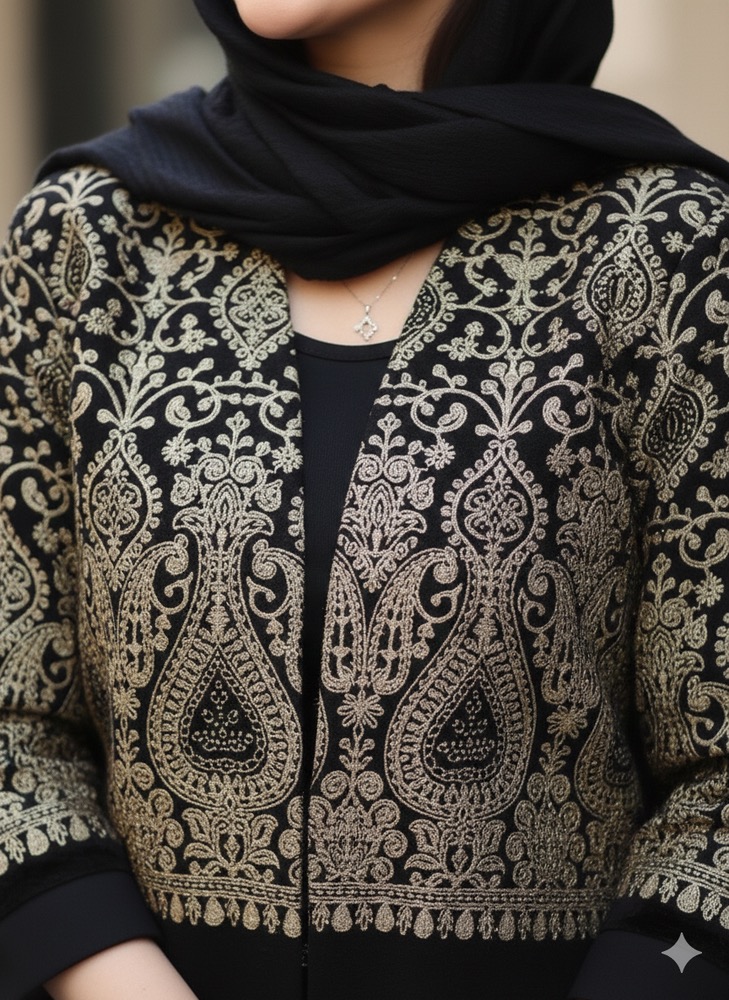 🔶 جزئیات: طراحی منحصر به فرد با پنلهای گلدوزی شده اسلیمی در قسمت سینه، سرآستینها و جیبها. دارای قزن مخفی جهت استفاده به صورت جلو بسته (تنخور فوقالعاده حرفهای 🅰️ - کیفیت دوخت مزونی تضمینی 🅰️)
