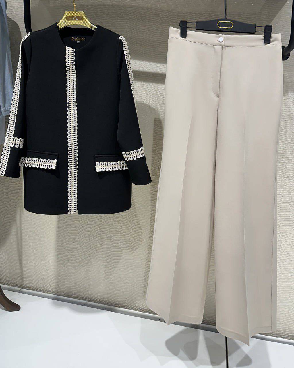 شلوار در دورنگ مشکی و کرم تولید شده