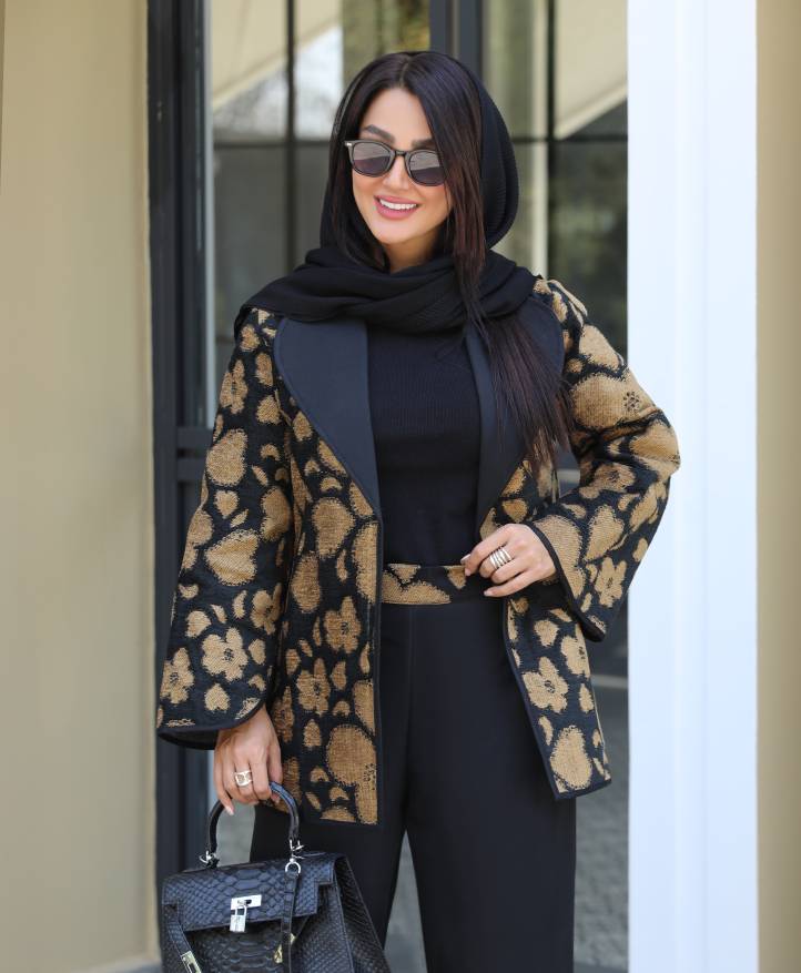 جنس کت :ترکیب تافته سوزن دوزی و مخمل«قسمت گلها ورنگ روشن مخمل هستند»