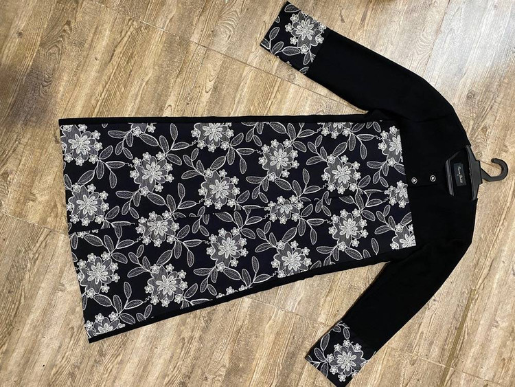 🔶 جزییات: طراحی خیرهکننده و گلدوزیهای متراکم روی زمینه مشکی عمیق؛ مدل جلو دکمهدار با تنخور قوارهدار و عالی؛ گلدوزی شده در قسمت جلو و سرآستینها (تنخور بینظیر 🅰️ - دوخت مزونی و تضمینی 🅰️)