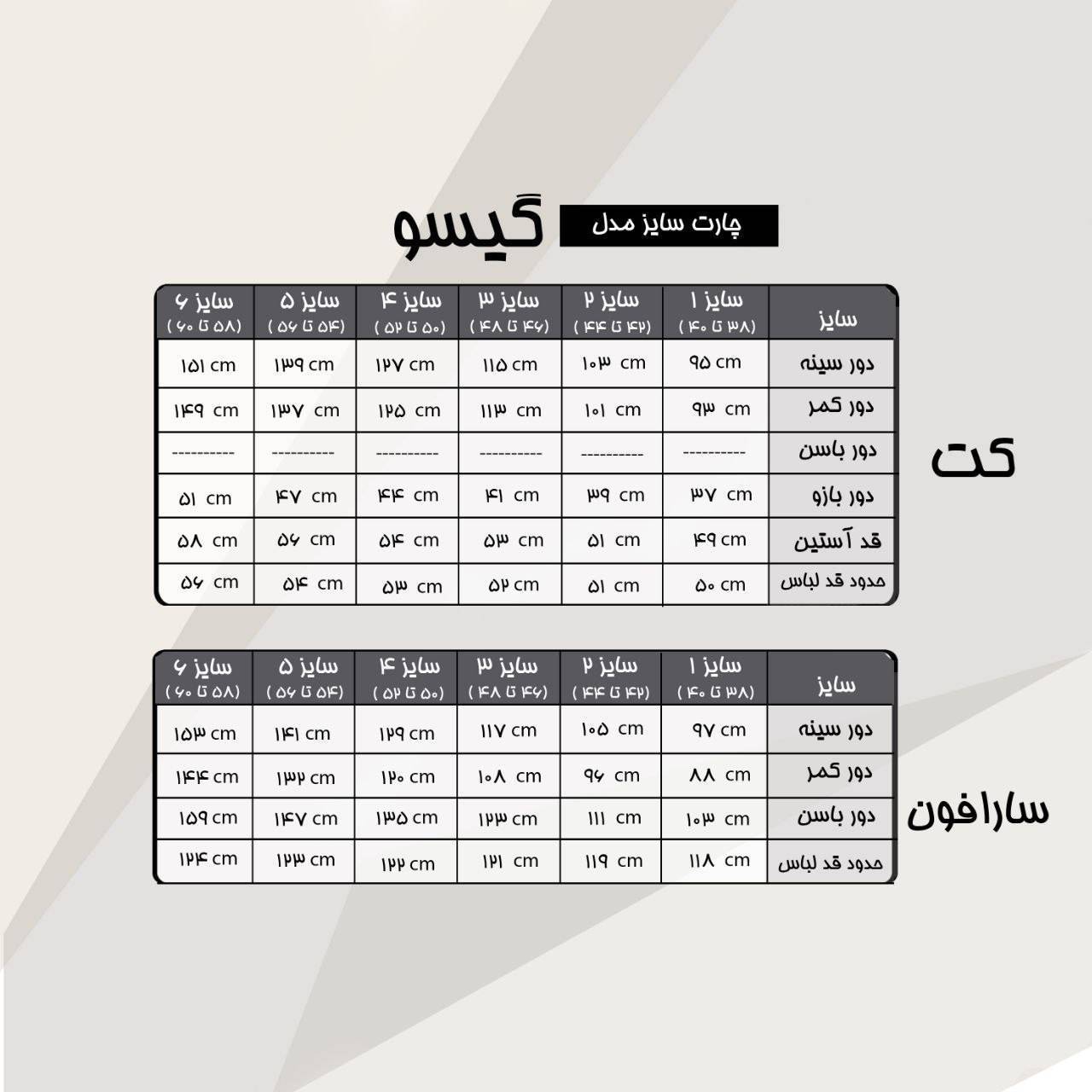 قد سارافون : 118 الی 124 قد کت : 50 الی 56