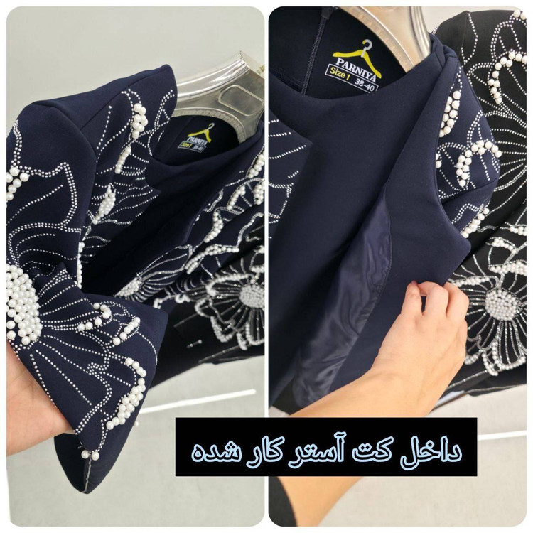 توضیحات : پشت سارافون زیپ مخفی دارد . داخل کت آسترکشی شده